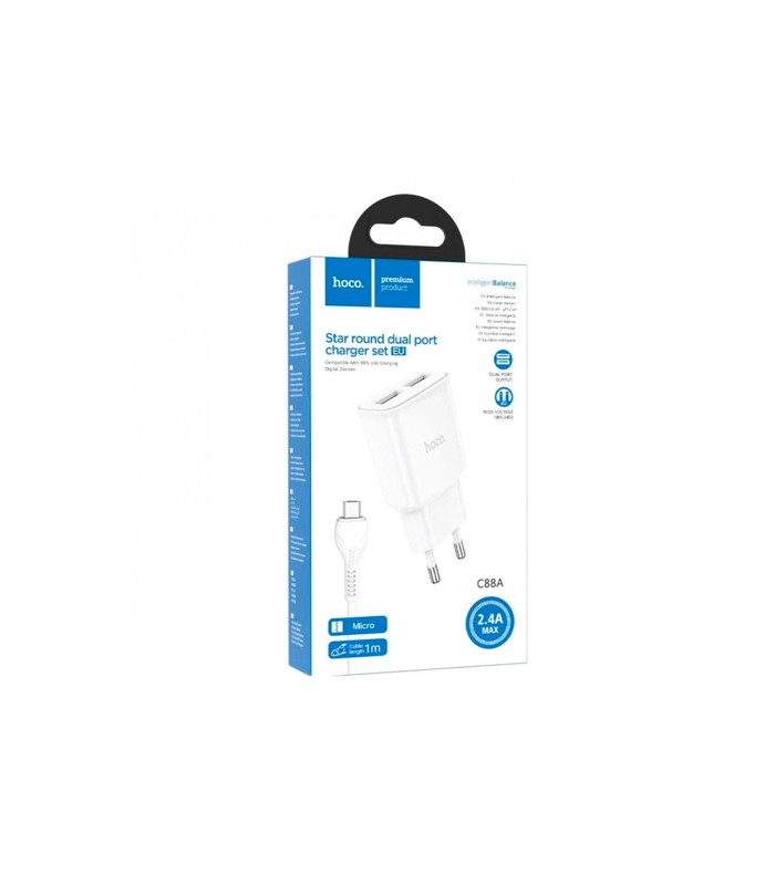 Этот набор включает в себя сетевое зарядное устройство с двумя портами USB и кабель Micro USB. СЗУ обеспечивает выходной ток до 2.4A на каждом порту для быстрой зарядки устройств. Кабель Micro USB длиной 1 метр также поддерживает ток до 2.4A и предназначен для зарядки и синхронизации совместимых устройств с разъемом Micro USB. Упаковка в коробке обеспечивает надежную защиту при транспортировке и хранении.