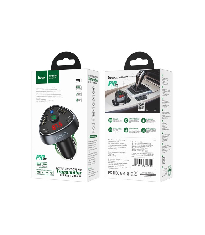 FM- модулятор HOCO E51, Black, Box