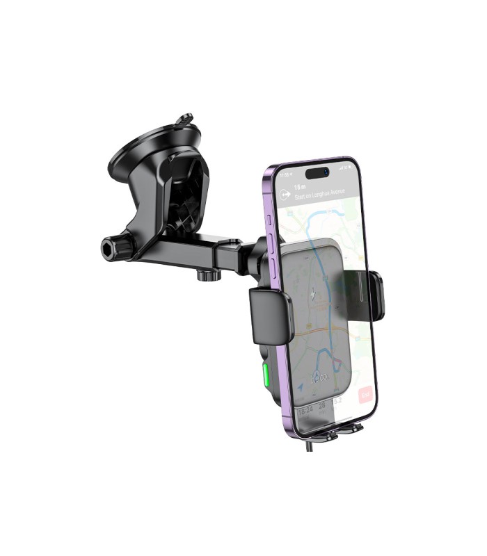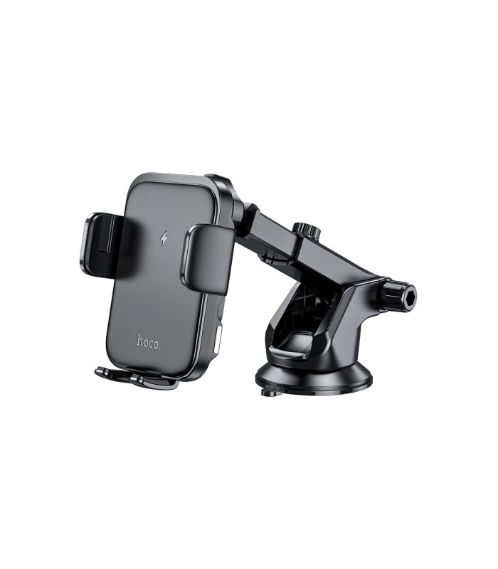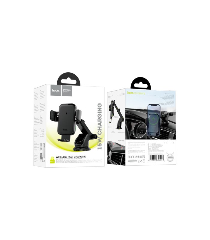 Автодержатель HOCO HW11+ Wireless Charging 15W, крепление на торпеду, зажим 50-90мм, Black, Box
