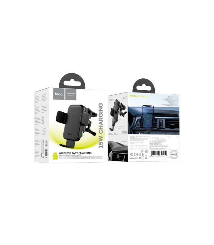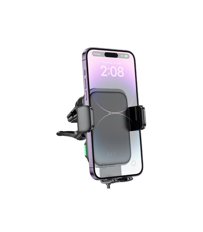 Автодержатель HOCO HW10+ Wireless Charging 15W, крепление на решетку, зажим 50-90мм, Black, Box