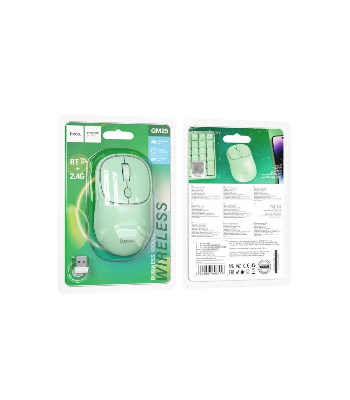 Мышь беспроводная HOCO GM25, 1600DPI, 2.4GHZ, Light Green, Blister