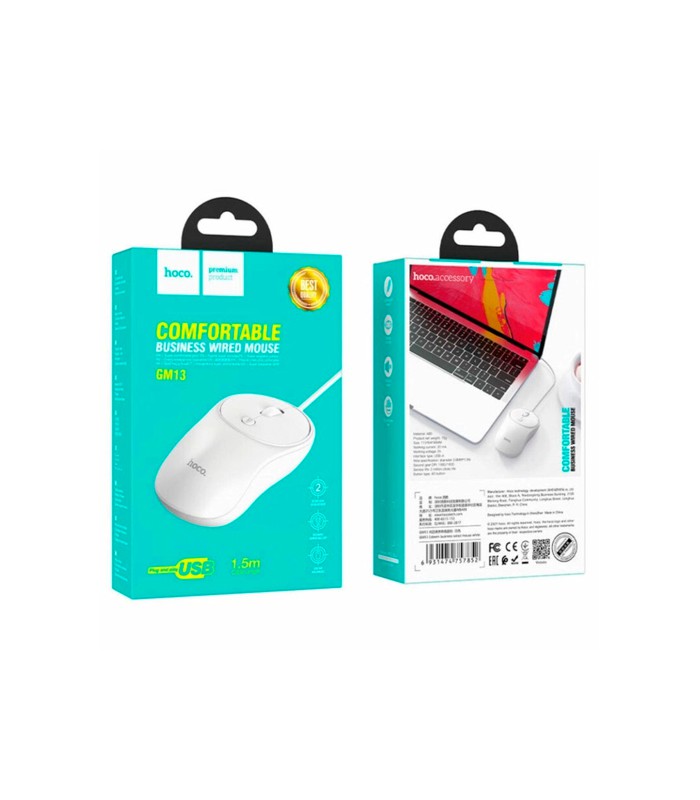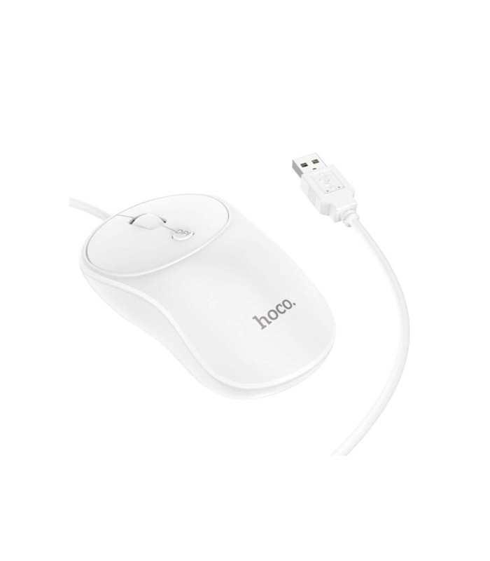 Мышь проводная HOCO GM13W, 1000DPI, белого цвета, в упаковке.