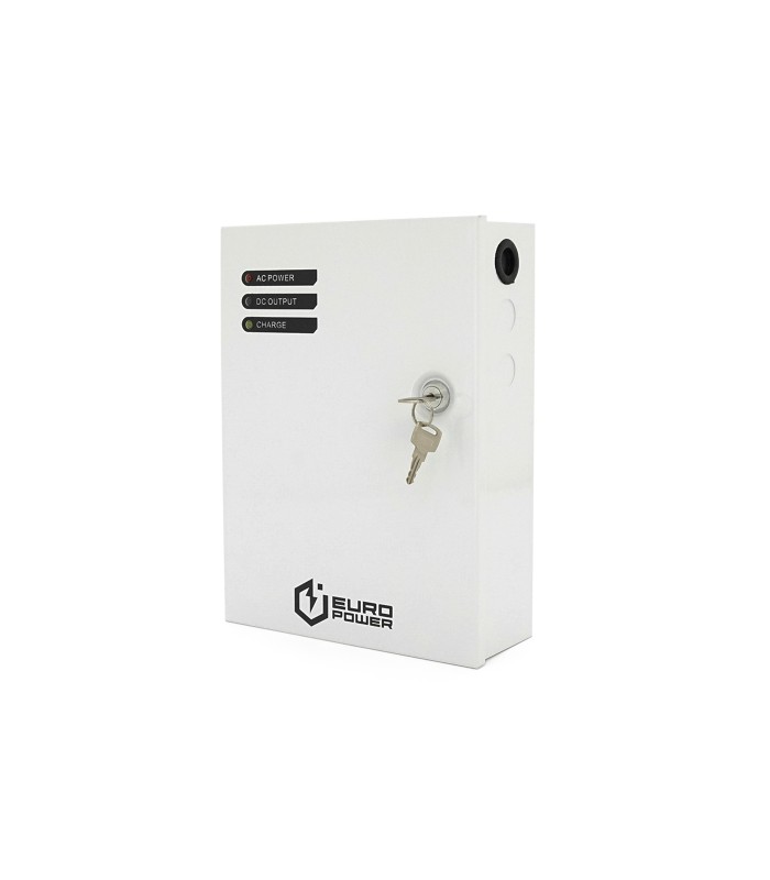 EuroPower EP-UPS-1205(M) — это источник бесперебойного питания (UPS) в прочном металлическом корпусе с замком, рассчитанный для использования с аккумуляторами GEL/AGM 12V/7Ah. Основной выход составляет 13.8V / 5A, а встроенный зарядный модуль обеспечивает стабильный ток заряда аккумулятора до 0.65A, что гарантирует надежную работу систем даже при отключении электросети.