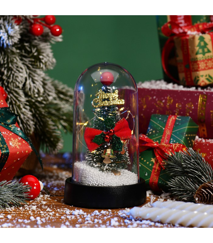 Ялинка в колбі з бантиком, Led підсвічуванням, 15х9см, живлення від 3*LR44