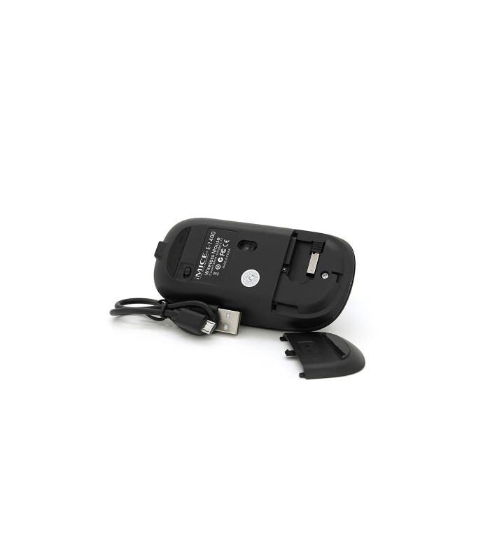 Беспроводная мышь iMICE E-1400 предназначена для работы с операционными системами Windows XP/Vista/Win7/8/10 и Mac OS X. Она оснащена 5 кнопками и поддерживает технологию 2.4Ghz, обеспечивающую радиус действия до 10 метров. Мышь имеет возможность переключения разрешения оптического сенсора на 800/1200/1600 DPI, что позволяет выбрать оптимальную скорость курсора. Также мышь можно заряжать, что обеспечивает удобство в использовании. Цвет корпуса - черный. Упаковка - коробка. Цена - Q100.