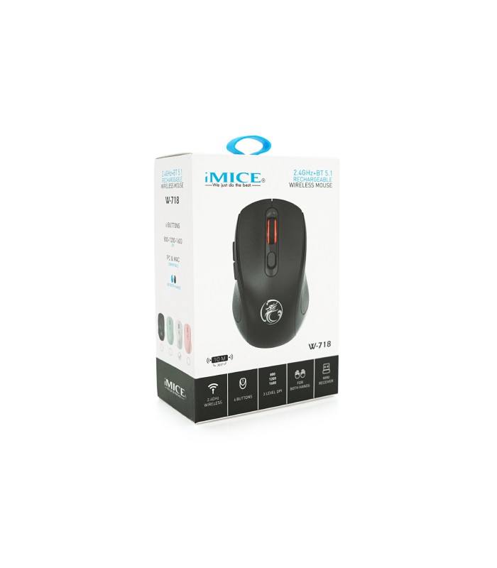 Беспроводная мышь iMICE W-718 предназначена для удобной работы с компьютером. Устройство имеет шесть кнопок и поддерживает три разных уровня DPI (800/1200/1600), что позволяет пользователю выбирать оптимальную чувствительность для работы. Мышь работает по стандарту 2.4Ghz и Bluetooth, обеспечивая стабильное подключение на расстоянии до 10 метров. Совместимость с операционными системами Windows XP/Vista/Win7/8/10 и Mac OS X делает эту мышь универсальным устройством. Кроме того, устройство оснащено аккумулятором, который можно перезаряжать, и имеет белый цвет.
