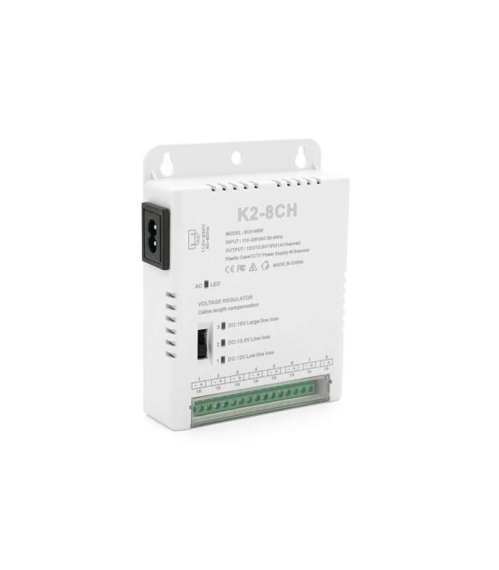 Импульсный блок питания с регулировкой напряжения 12/13,5/15V-8A/8CH по 1А, в пластиковом корпусе, 8-ми канальный