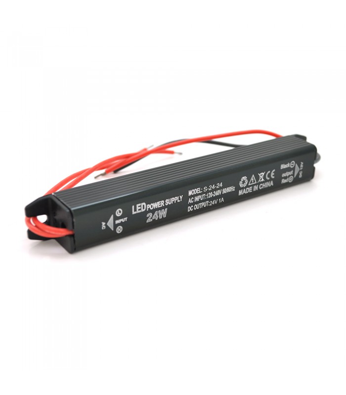 Этот герметичный импульсный блок питания предназначен для использования внутри помещений (IP20). Он обеспечивает небольшую мощность до 24 ватт и может обеспечивать до 1 ампера тока при напряжении 24 вольта. Такой блок питания может быть полезен для небольших электронных устройств или для использования в узких местах благодаря его компактным размерам.