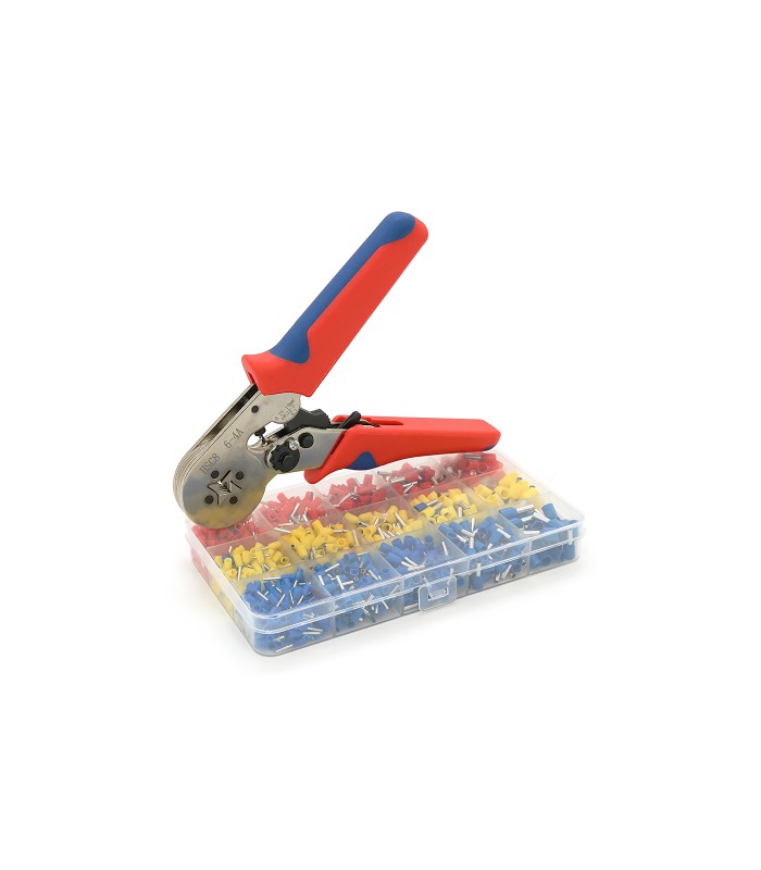 Кримпер HCS8 6-4A для обжима кабельного наконечника, blue-red, набор кабельных наконечников (VE0508,VE1508,VE1008,VE4009,VE2508)