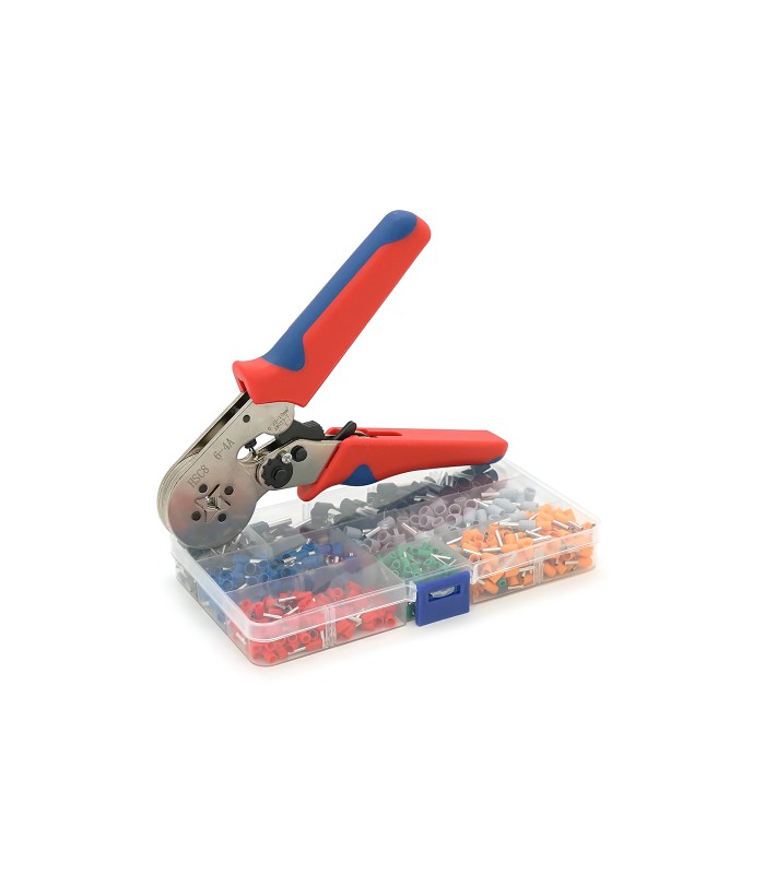 Кримпер HCS8 6-4A для обжима кабельного наконечника, red-blue + набор кабельных наконечников (VE0508,VE7508,VE1008,VE1508,VE2508