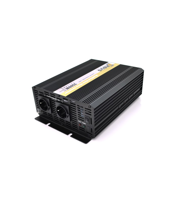 Инвертор напряжения ORBUS ORMS24-2500 (2500Вт), 24/220V, аппроксимированный, 2 Shuko, клемные провода, 6 предохранителей, Box.Q20