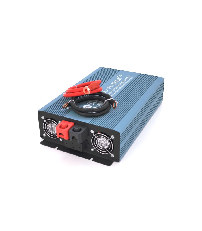 Инвертор напряжения MXS-3000-24M - используется для преобразования электричества 24В в 220В. Позволяет подключать нагрузку до 2000Вт. На лицевой стороне устройства расположены две розетки, кнопка вкл/выкл, светодиоды, а также USB разъем для зарядке ваших гаджетов. На обратной стороне устройства, клемы для подключения проводов акб, вентилятор для активного охлаждения устройства.