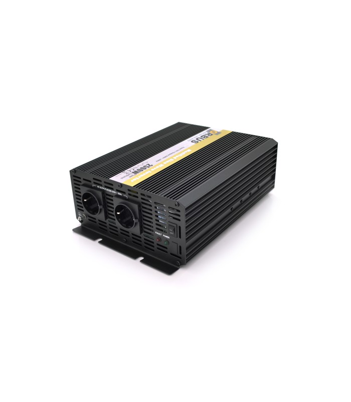 Инвертор напряжения ORBUS ORMS2500 (2500Вт), 12/220В, с аппроксимированной синусоидой, 2 розетки Schuko, 2 клеммных провода, 9 предохранителей, коробка