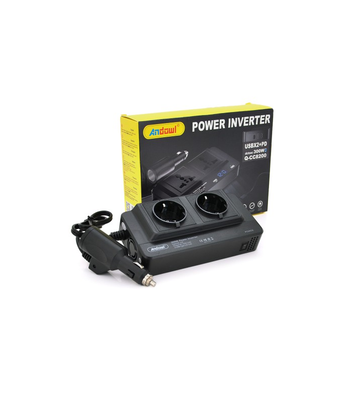 Инвертор напряжения Q-CC8200 300W, 12/220V, аппроксимированный, 2 универсальные розетки+2USB+Type C, Box