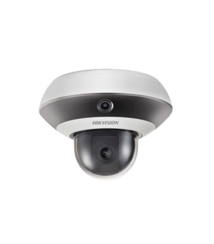 DS-2PT3326IZ-DE3 (2.8-12 мм) - 2MP 4 × Сетевая PanoVU PTZ-видеокамера Hikvision. Панорама: 3 камеры, матрица: 1/2.8' Progressive Scan CMOS, Чувствительность: 0.05 Люкс/F2.0 (цвет), 0.01 Люкс/F2.0 (ч/б), 0 Люкс с ИК, объектив: f=2мм / F2.0, Запись: 1920 х 1080 - 25 кадров/с, Функции: WDR, HLC, 3D DNR. PTZ: матрица 1/2.8' Progressive Scan CMOS, Чувствительность: 0.05 Люкс/F2.0 (цвет), 0.01 Люкс/F2.0 (ч/б), 0 Люкс с ИК, Объектив: f=2.8-12 мм, 4х, функции: DWDR, HLC, 3D DNR, EIS, смарт слежение, интерфейсы: аудио 1вх/1вых, 1 RJ45 10 M/100 M Ethernet, DC 12В/24Вт, TVS 2000В, -10°C – 50°C, Ф 183 x 133,2 мм, 0,9 кг