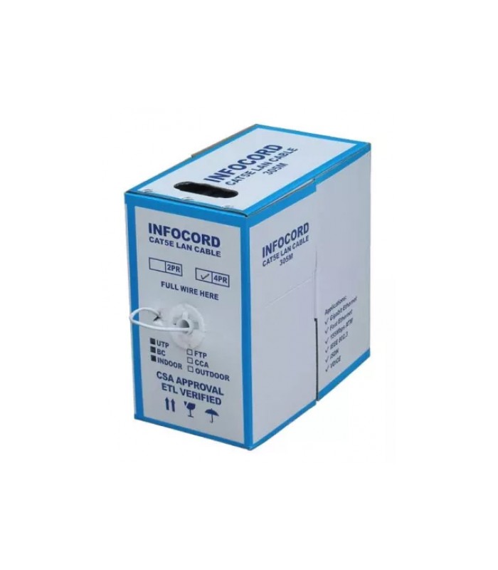 Кабель Infocord КПВ вита пара категорії 5е для внутрішньої прокладки. Призначений для створення комп`ютерних мереж типу Ethernet, а також для систем IP-відеоспостереження, з використанням спеціальних приймально-передавачів відеосигналу, застосовується в системах аналогового або AHD відеоспостереження.