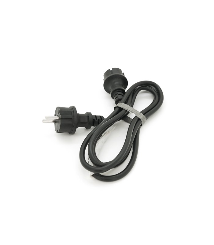 Сечение провода 2*1,5 мм. Номинальный ток – 14А, напряжение – 250В, мощность погрузки – 3100Вт. Изготовлен из медного морозостойкого кабеля ПВС с неразборной литой вилкой и розеткой евростандарта. Прост и удобен в эксплуатации и подключении.
