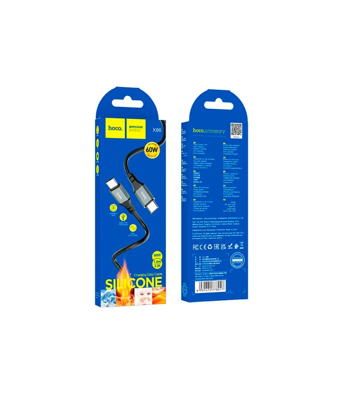 Кабель Hoco X86 silicone, Type C-Type C, 60W, Black, длина 1м, BOX