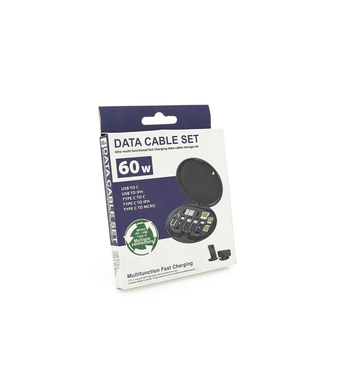 Кабель Data Cable Set, Type-C-Type-C+ переходники(USB+Lighting+Micro), 60W, White, длина 0.2м, Case