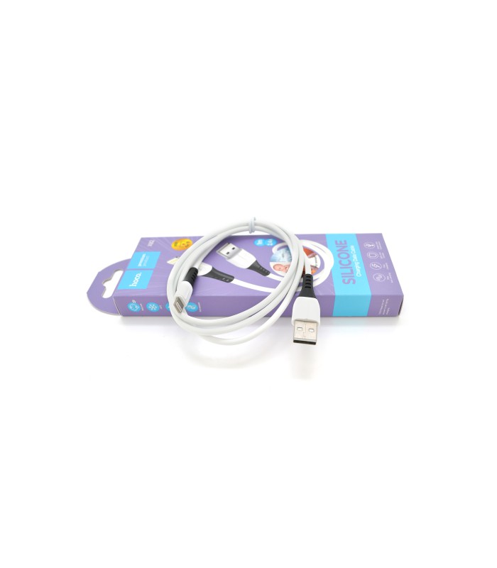 Кабель Hoco X82 из силикона для iPhone с разъемом USB, цвет белый, длина 1 метр, поставляется в коробке.