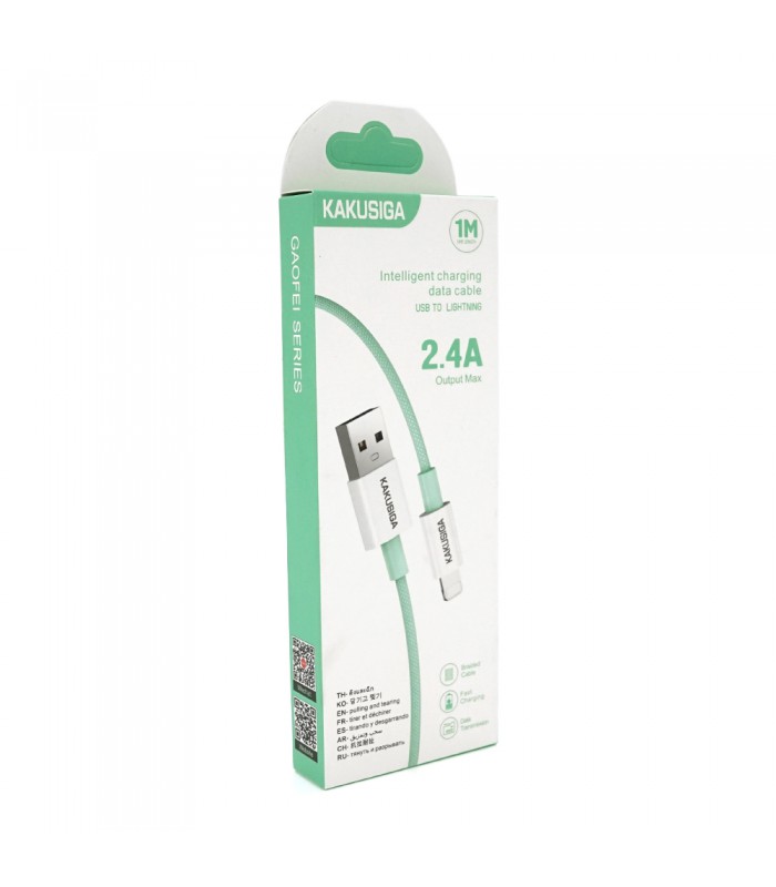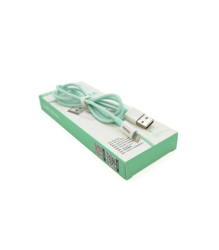 Кабель iKAKU KSC-723 GAOFEI - это умный зарядный кабель для iPhone в зеленом цвете, длиной 1м, с током 2.4A, поставляемый в коробке.