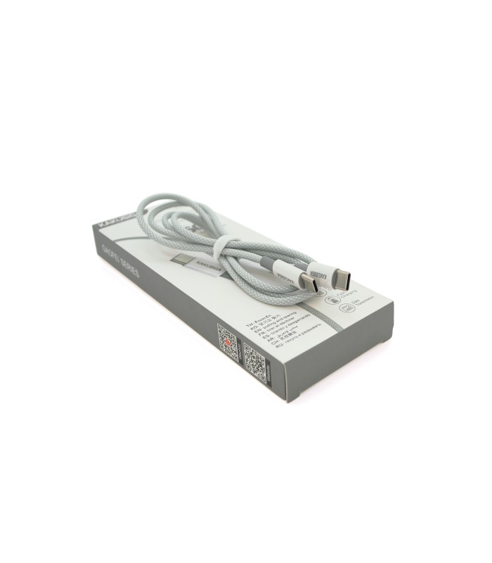 Кабель iKAKU KSC-723 GAOFEI PD20W представляет собой умный быстрый зарядный кабель (Type-C to Type-C) серебристого цвета длиной 1 метр, поставляемый в коробке.