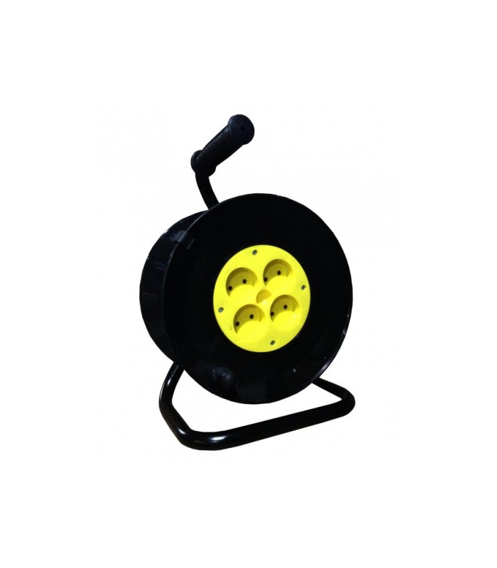 Катушка для удлинителя без кабеля до 50м на 4 гнезда без заземляющего контакта, с контактной группой из латуни (желтая).
