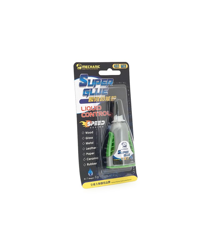 Клей MECHANIC 401MIX, цианоакрилатный, однокомпонентный, термостойкий, быстрой полимеризации клей с низкой вязкостью, 5g, блисте