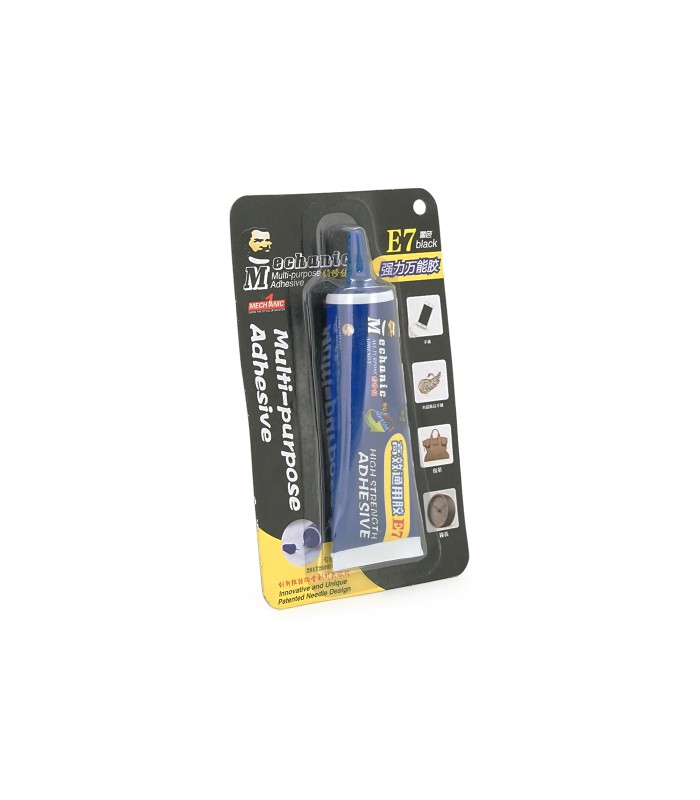 Клей MECHANIC E7/50 сочетает в себе надежность, удобство использования и универсальность, что делает его практичным решением для широкого круга задач - от бытового ремонта до профессионального применения. Черный цвет клея обеспечивает эстетичный вид шва на темных поверхностях.