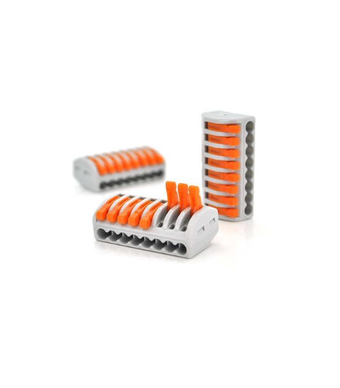Клемма с нажимными зажимами 8-проводная WAGO K222-418 для распределительных коробок, 8-pin, серо-оранжевая.