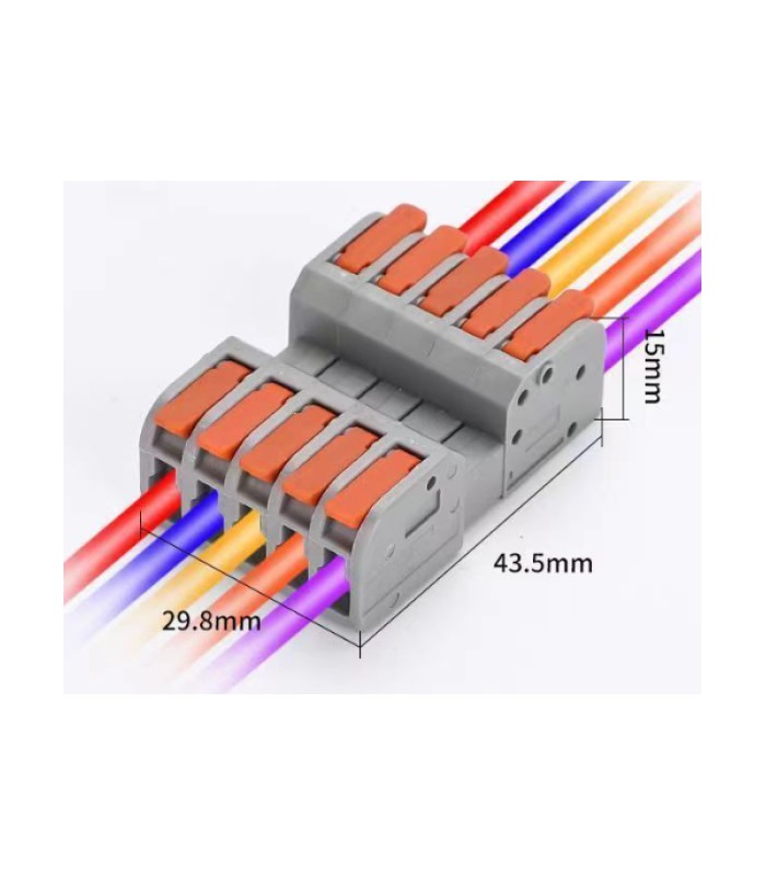 Клемма разъемная с нажимными зажимами 5-проводная DF-2604D, 5-pin, 250V, 32A, 0.2-4.0mm2, 29.8*43.5*15mm, серая