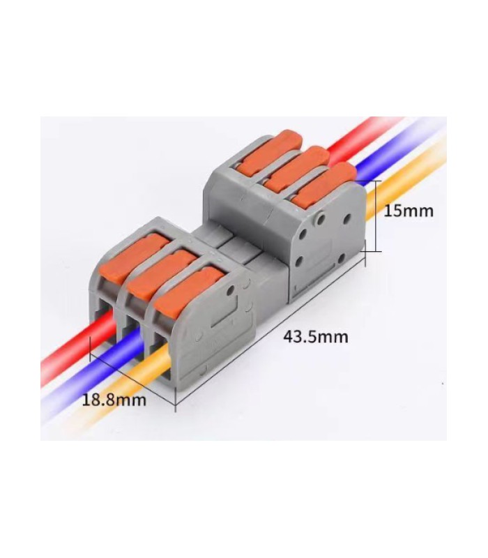 Клемма разъемная с нажимными зажимами 3-проводная DF-2604D, 3-pin, 250V, 32A, 0.2-4.0mm2, 18.8*43.5*15mm, серая