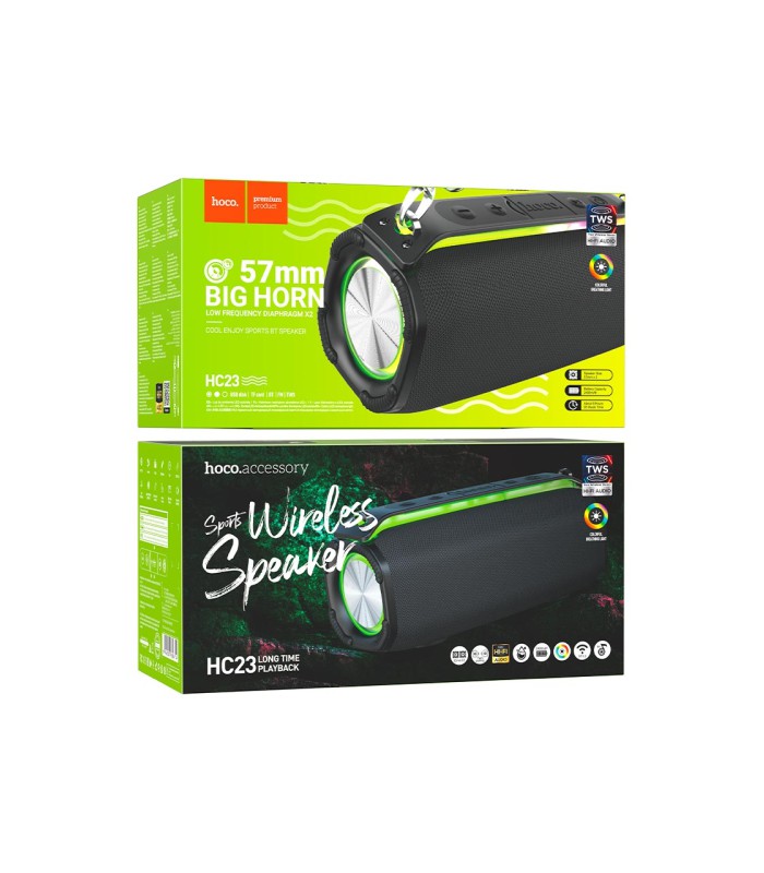 Портативная колонка HOCO HC23 IPX4, BT 5.0, 2x5W, RGB подсветка, Black, Box