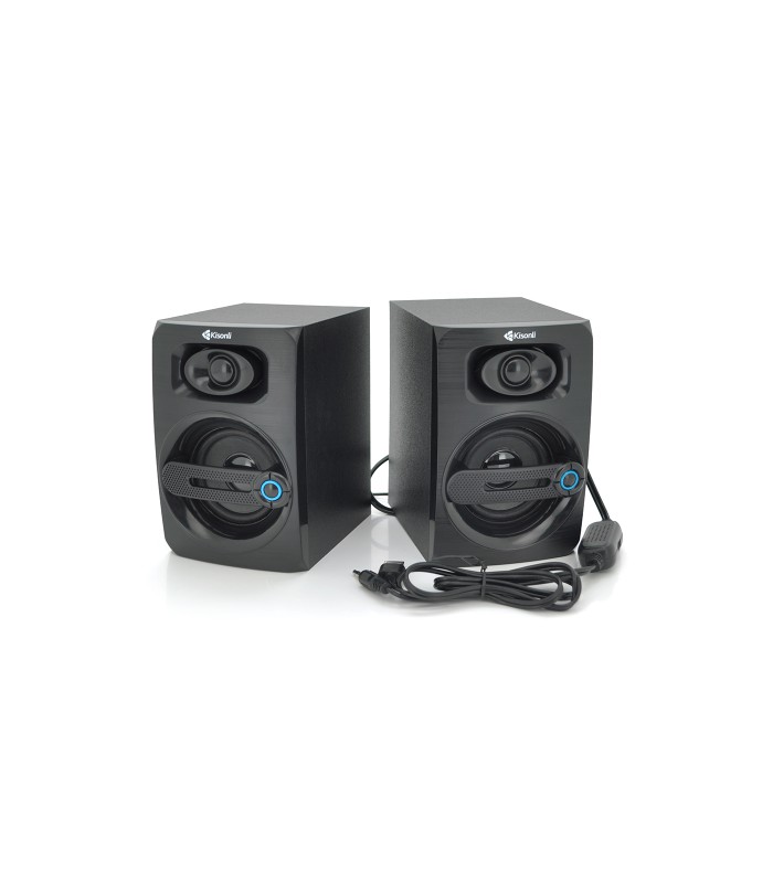 Компьютерные колонки Kisonli T010а - активная акустика из 2-х колонок со встроенным усилителем. Акустическую систему можно подключать к компьютеру, планшету, телефону, телевизору или другому источнику звука.