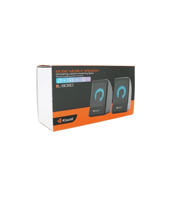 Колонки 2.0 Kisonli L-8080 предназначены для подключения к ПК и ноутбуку. Они оснащены USB и 3.5mm разъемами, обладают мощностью 2x3W и воспроизводят звук в диапазоне частот от 20Гц до 20КГц. Размеры составляют 20X11X13мм, цвет - черный.