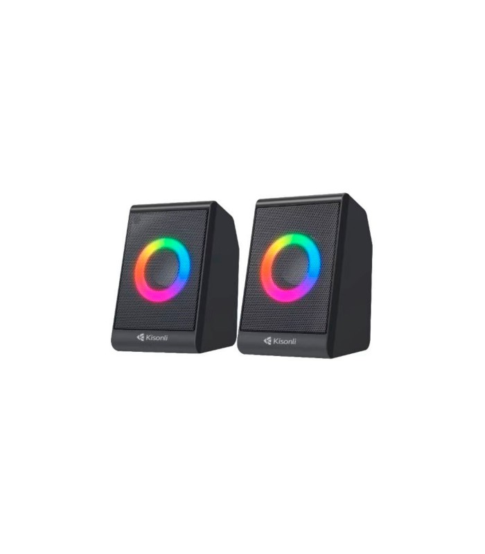 Колонки 2.0 Kisonli X12 предназначены для подключения к ПК и ноутбуку. Они обладают USB и 3.5mm подключениями, имеют мощность 2x3W и воспроизводят звук в диапазоне частот от 20Гц до 20КГц. Для питания используется постоянный ток 5В. Колонки оснащены RGB подсветкой и выполнены в черном цвете. Поставляются в коробке.