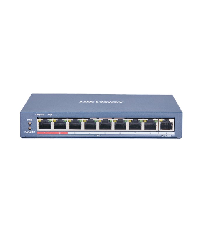 8-портовый неуправляемый РоЕ. Downlink порты: 8xRJ45 (100Мбит/с) с поддержкой PoE , Uplink порты: 1xRJ45 (100Мбит/с), Протокол PoE: IEEE 802.3, IEEE 802.3u, IEEE 802.3x до 300 м, Питание: 48 В DC, 2.5 A, -10 °C - 55 °C, 170 × 27.6 × 93.1 мм.