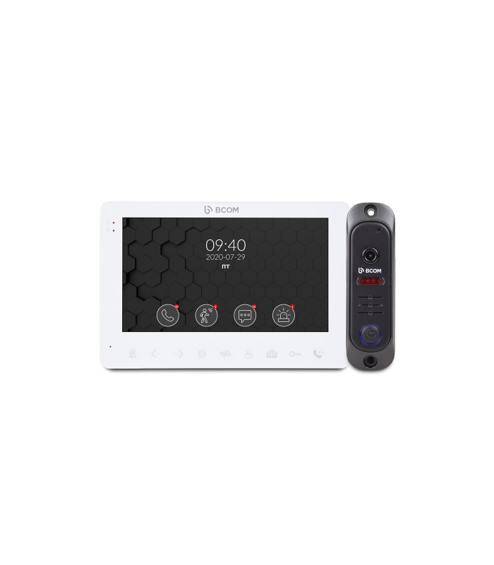 Комплект BCOM BD-780M White Kit предназначен для обеспечения безопасного и контролируемого доступа в квартиру, частный дом, офис либо другое жилое или рабочее помещение. Он позволяет, находясь внутри помещения и без непосредственного контакта, увидеть, услышать и переговорить с посетителем, а также при необходимости дистанционно открыть ему дверь, оснащенную подключенным электрическим замком.