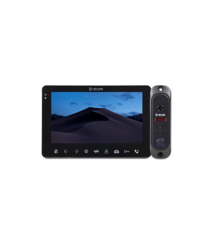 Комплект: видеодомофон и видеопанель. Цветной домофон с TFT экраном 7 дюймов и сенсорными кнопками управления, подключение 2 вызывных панелей, 2 видеокамер, 2 датчиков тревоги. Разговор по громкой связи, есть интерком. Соединение с вызывной панелью 4-проводное. Слот microSD до 32 Гб, питание 100-240V, потребление 8 Вт. Корпус домофона черного цвета. Цветная вызывная панель черного цвета с разрешением 1000ТВЛ и углом обзора 110°, с накладным способом установки