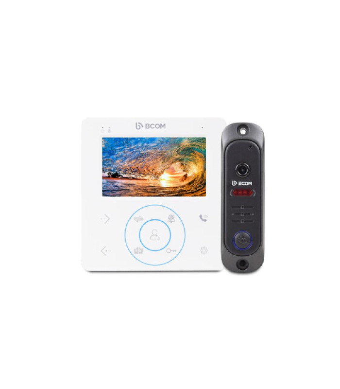 Комплект: видеодомофон и видеопанель. Цветной домофон с TFT экраном 4 дюйма и сенсорными кнопками управления, подключение 2 вызывных панелей, 2 видеокамер, 2 датчиков тревоги. Разговор по громкой связи, есть интерком. Соединение с вызывной панелью 4-проводное. Слот microSD до 32 Гб, питание 100-240V, потребление 8 Вт. Корпус домофона белого цвета. Цветная вызывная панель черного цвета с разрешением 1000ТВЛ и углом обзора 110°, с накладным способом установки.