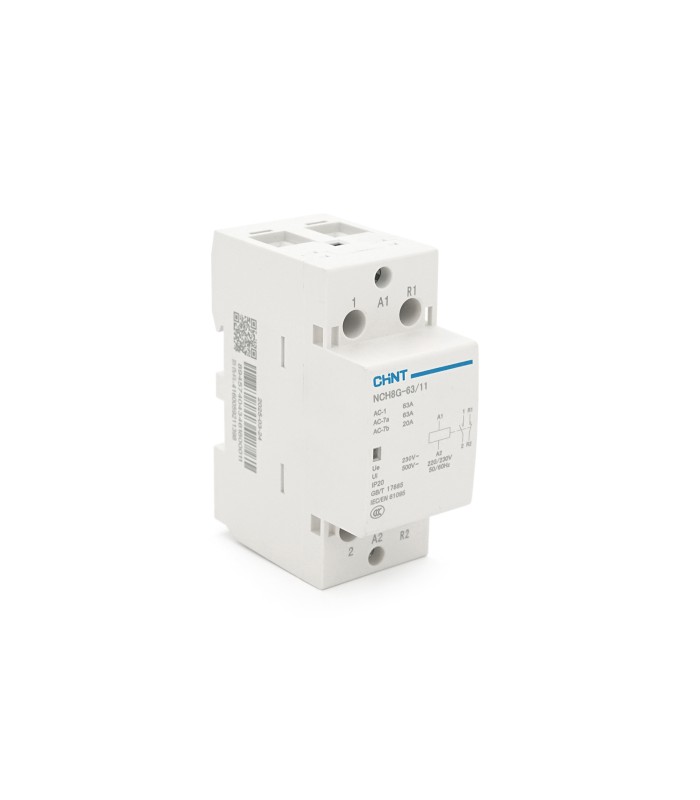 Универсальный модульный контактор для управления мощными силовыми цепями переменного тока. Устройство предназначено для дистанционного коммутирования нагрузок с использованием стандартного напряжения управления 220 В. Монтаж на DIN-рейку обеспечивает легкую интеграцию в распределительные устройства и шкафы автоматизации.