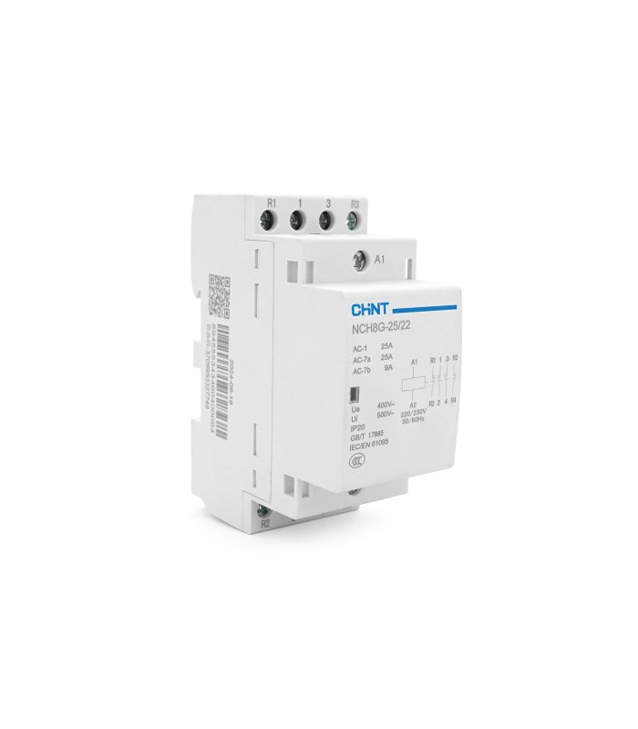 Универсальный модульный контактор для комплексного управления силовыми цепями переменного тока. Устройство предназначено для дистанционного включения, отключения и переключения нагрузок с помощью стандартного напряжения управления 220 В. Монтаж на DIN-рейку обеспечивает удобную установку в распределительные щиты и шкафы автоматизации.