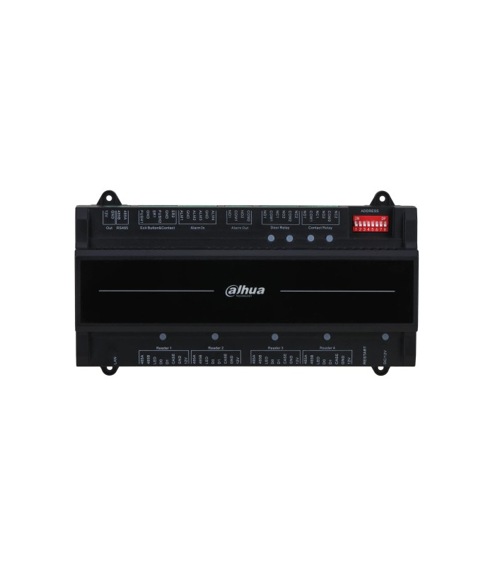 5x - RS-485, 4х - Wiegand, 4х - тревога вход/выход, 2х - кнопка выхода, 2х - статус двери, 2х - контроль замка,