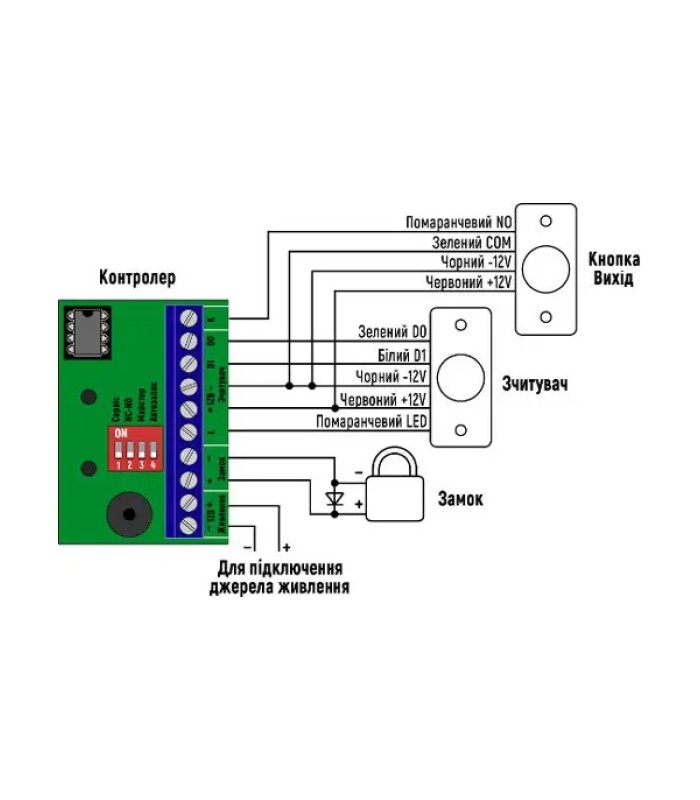 Также, есть возможность подключения кнопки выхода (стоимость выход-2 и пр.) или других устройств для управления замком, например - домофон.