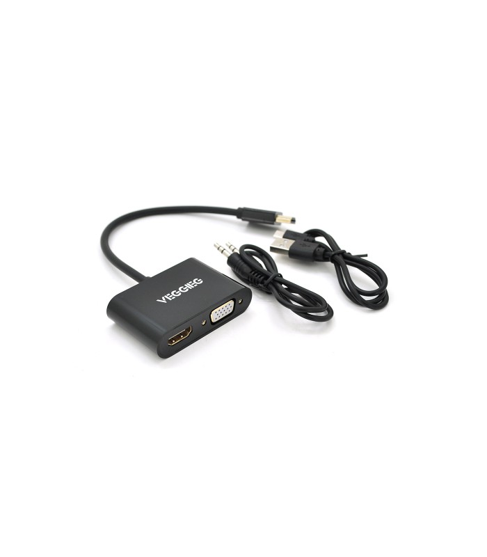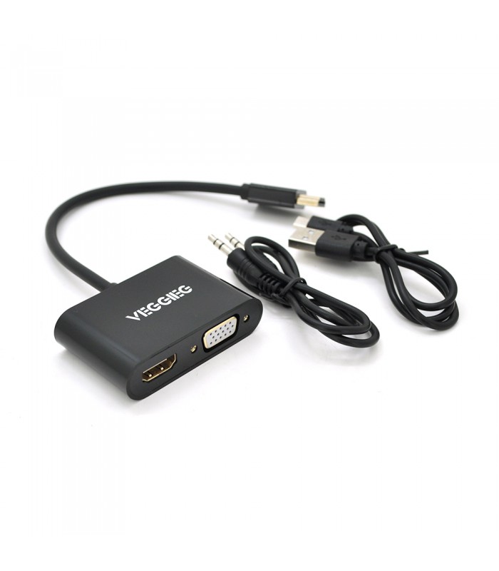 Конвертер VEGGIEG H-V500 HDMI (папа) на VGA(мама) + HDMI (мама) - для подключения компьютера, ноутбука, PS4 и других устройств к VGA или HDMI монитору, телевизору.