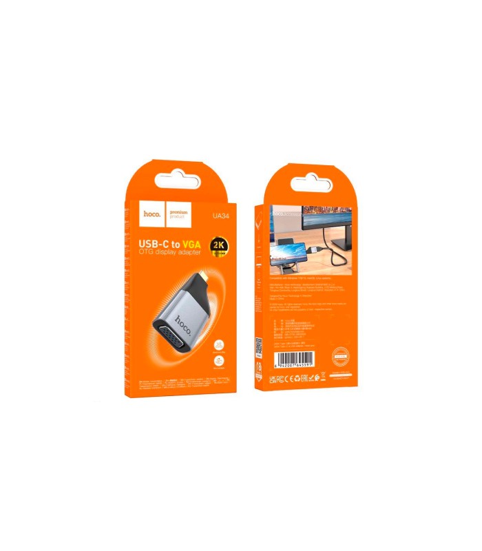 Переходник HOCO UA34 Type-C (папа)/VGA(мама), Gray, Box