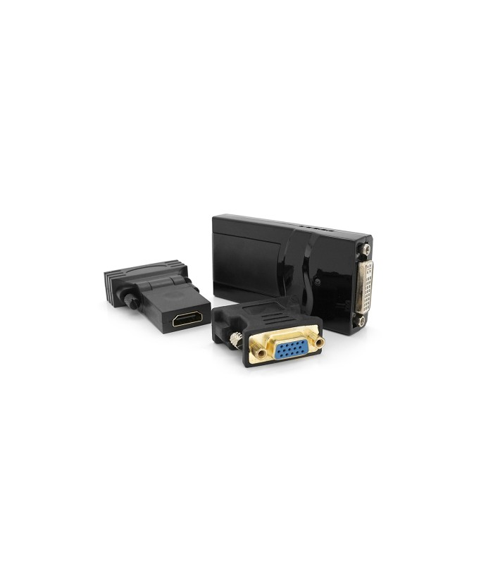 Вот как это работает: Основной адаптер подключается к компьютеру через USB-кабель и оснащен портом DVI-I (мама).