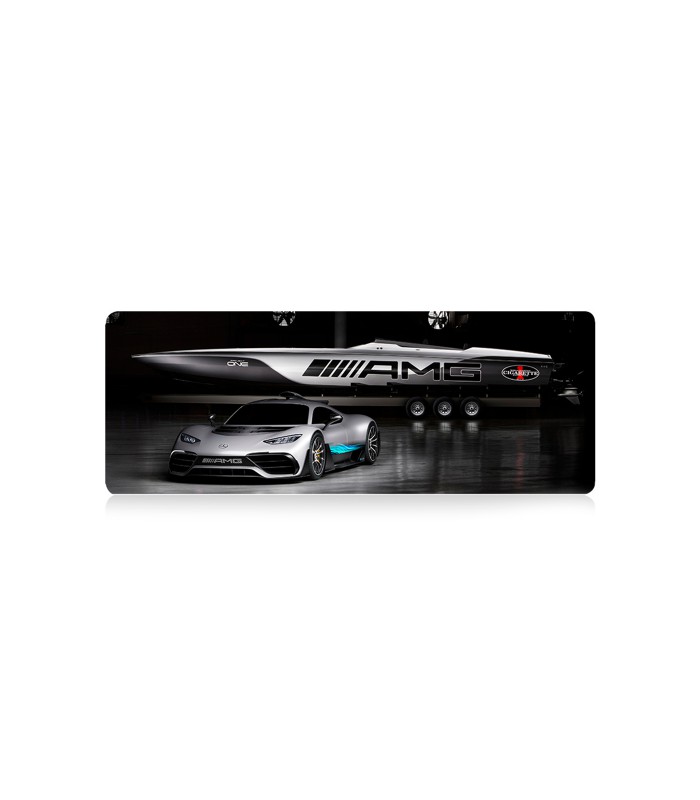 Тканевый коврик Mercedes-AMG с боковой прошивкой, серого цвета, толщиной 2 мм и размером 300*700 мм.