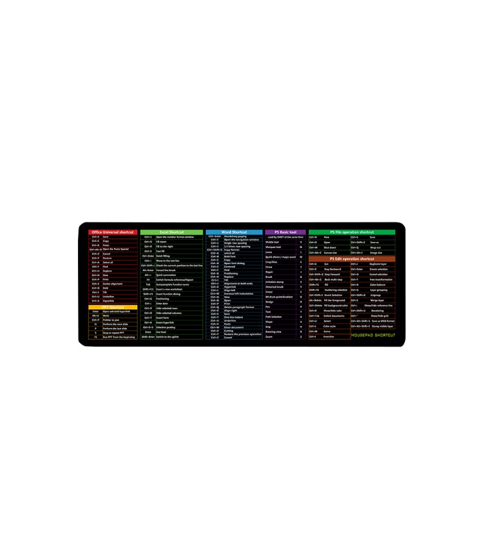 Тканевый коврик черного цвета с боковой прошивкой и толщиной 2 мм, предназначенный для использования вместе с Shortcut keys-3. Размеры коврика составляют 300*700 мм. Комбинация на английском язык