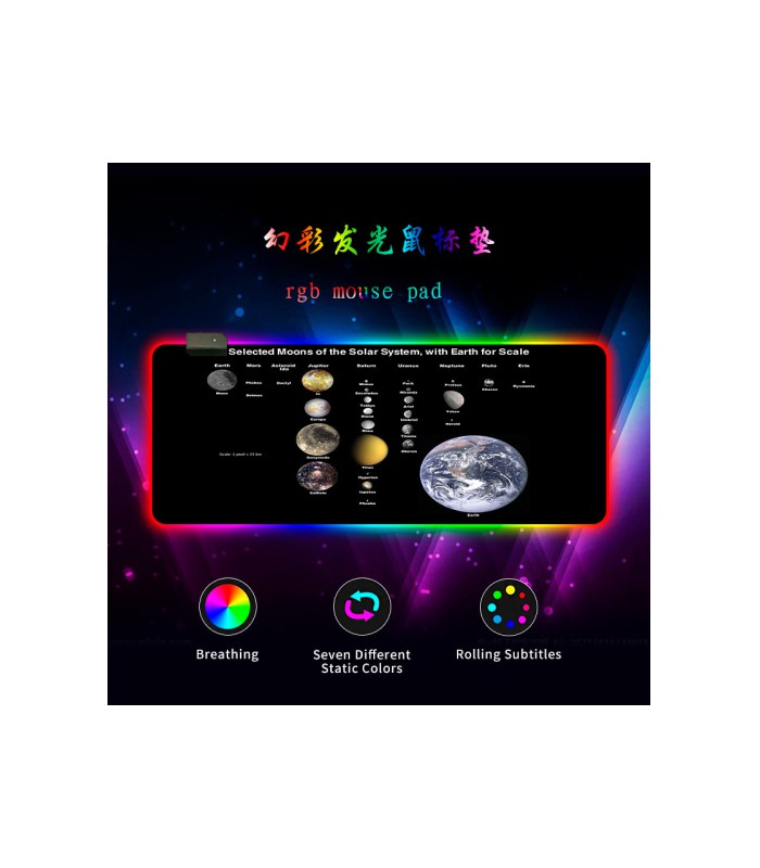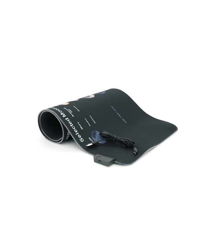 Коврик для мыши 'Planets scales' – это тканевый коврик с боковой прошивкой, толщиной 3 мм и RGB подсветкой. Он оснащен питанием через USB кабель длиной 1,8 м и поставляется в удобной коробке.